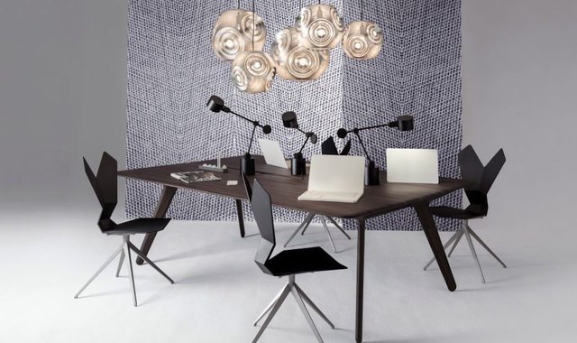 自由職業(yè)者、SOHO 一族在各行各業(yè)中的比重持續(xù)上升,Tom Dixon 注意到了這一點(diǎn),這次的辦公家具系列,正是瞄準(zhǔn)了工作場(chǎng)所和居家生活之間日益模糊的界限,“現(xiàn)在這種界限已經(jīng)越來越模糊,甚至消失,因?yàn)槿藗兊墓ぷ鞣绞揭沧兊脧?fù)雜多樣,有人在公共交通工具上工作,有時(shí),他們也在床上工作?!?
