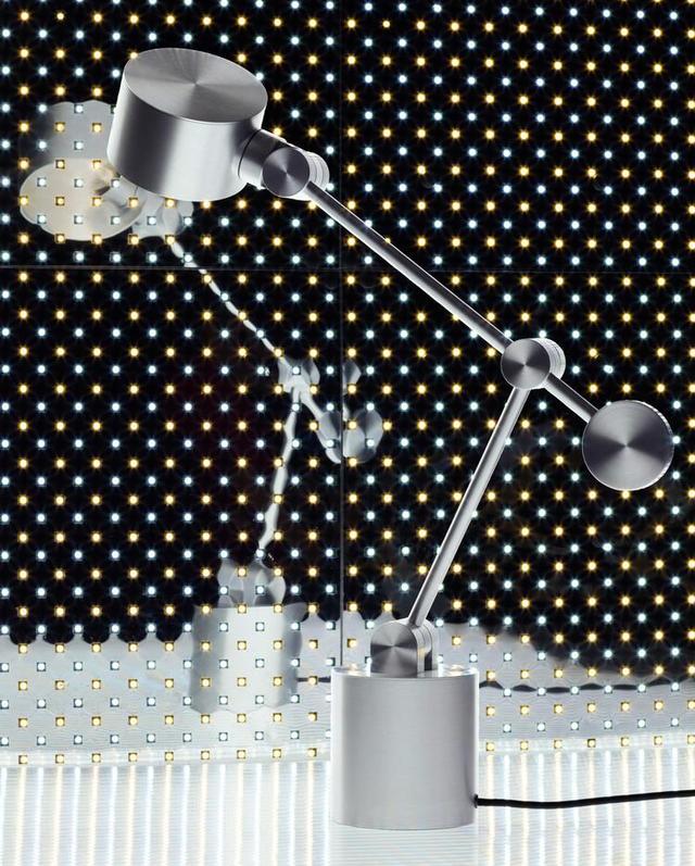 在設(shè)計(jì) Boom 臺(tái)燈時(shí),Tom Dixon 考慮到了繪圖員的需求,他將這款作品稱之為“極簡主義風(fēng)格雕塑的組合”,圓圓的燈頭搭配兩根纖細(xì)的可調(diào)節(jié)角度的支架,每個(gè)支點(diǎn)通過圓圈狀的關(guān)節(jié)進(jìn)行活動(dòng)。